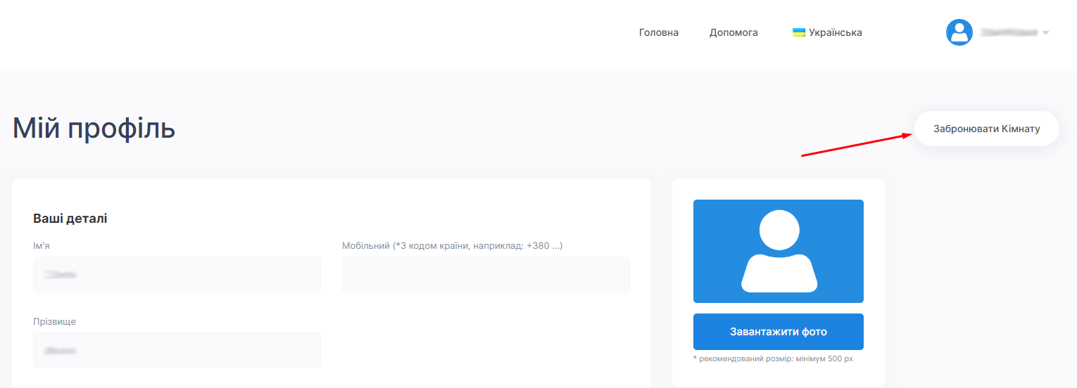 After authorization on the booking service, you will be redirected to the main page where you can see the location. To select a location, you need to click on the name where the image is, or click the “Book a Room” button in your profile (screenshot 1)