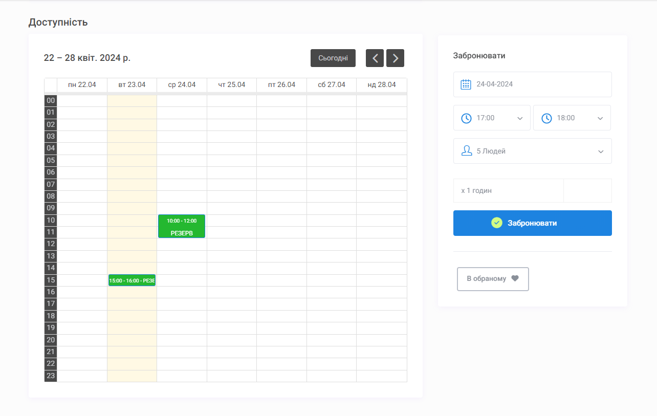 4. Booking status (Green – Reserved / Red – Error (busy date or time)