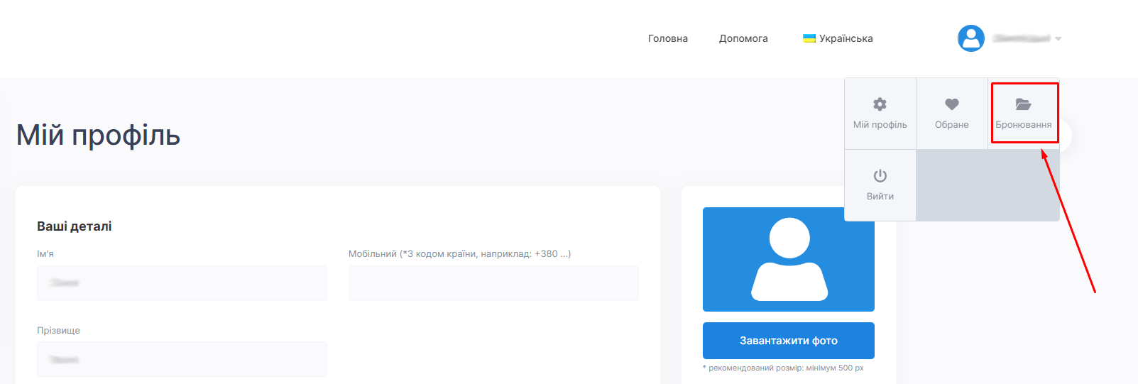 After logging in to the system, you will be automatically redirected to your personal profile, where you will see a button in the left menu called “My bookings”.